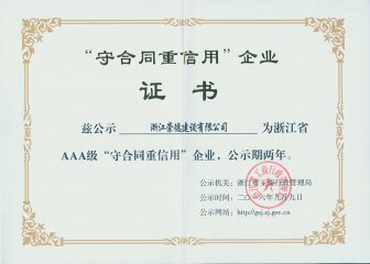 浙江省AAA級守合同重信用單位2013